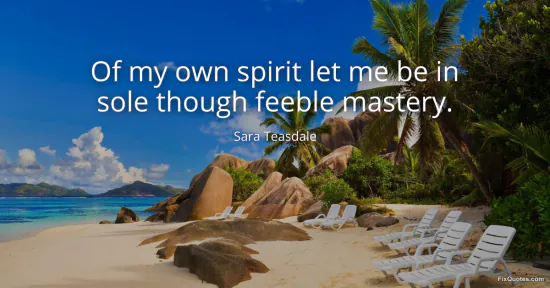 Teasdale, Sara. (2026, January 15). Of my own spirit let me be in sole though feeble mastery. FixQuotes. https://fixquotes.com/quotes/of-my-own-spirit-let-me-be-in-sole-though-feeble-165806/