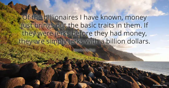 Buffett, Warren. "Of the billionaires I have known, money just brings out the basic traits in them. If they were jerks before they had money, they are simply jerks with a billion dollars." FixQuotes. February 28, 2026. https://fixquotes.com/quotes/of-the-billionaires-i-have-known-money-just-16653/.