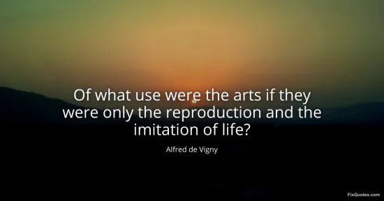 Vigny, Alfred de. (2026, January 17). Of what use were the arts if they were only the reproduction and the imitation of life? FixQuotes. https://fixquotes.com/quotes/of-what-use-were-the-arts-if-they-were-only-the-34763/
