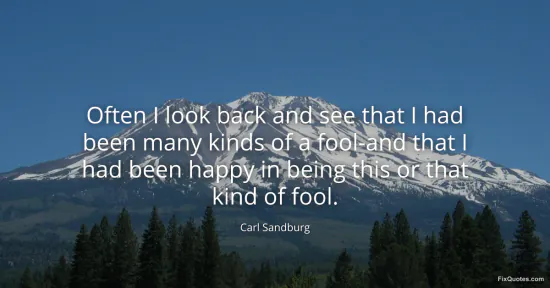 Sandburg, Carl. (2026, January 15). Often I look back and see that I had been many kinds of a fool-and that I had been happy in being this or that kind of fool. FixQuotes. https://fixquotes.com/quotes/often-i-look-back-and-see-that-i-had-been-many-150269/