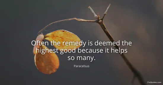 Paracelsus. "Often the remedy is deemed the highest good because it helps so many." FixQuotes. January 17, 2026. https://fixquotes.com/quotes/often-the-remedy-is-deemed-the-highest-good-57546/.