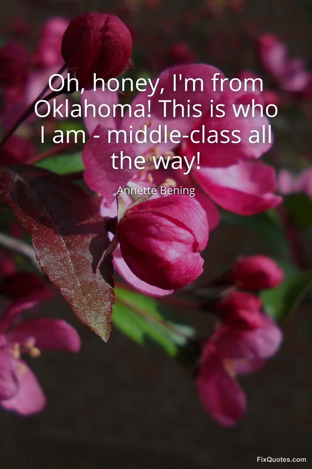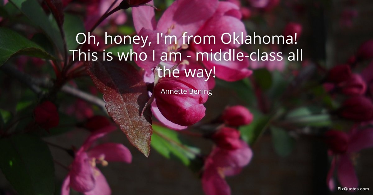 Bening, Annette. (2026, January 16). Oh, honey, I'm from Oklahoma! This is who I am - middle-class all the way! FixQuotes. https://fixquotes.com/quotes/oh-honey-im-from-oklahoma-this-is-who-i-am-121521/