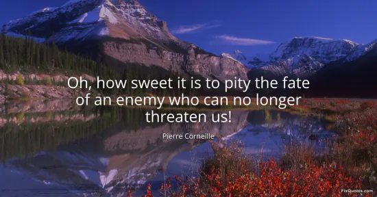 Corneille, Pierre. (2026, January 16). Oh, how sweet it is to pity the fate of an enemy who can no longer threaten us! FixQuotes. https://fixquotes.com/quotes/oh-how-sweet-it-is-to-pity-the-fate-of-an-enemy-89731/