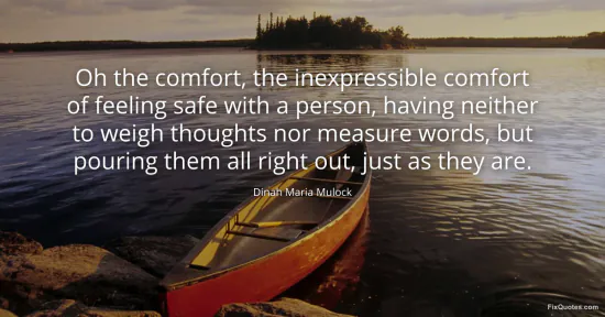 Mulock, Dinah Maria. "Oh the comfort, the inexpressible comfort of feeling safe with a person, having neither to weigh thoughts nor measure words, but pouring them all right out, just as they are." FixQuotes. March 15, 2026. https://fixquotes.com/quotes/oh-the-comfort-the-inexpressible-comfort-of-121430/.
