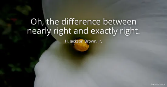 Jr., H. Jackson Brown,. "Oh, the difference between nearly right and exactly right." FixQuotes. January 17, 2026. https://fixquotes.com/quotes/oh-the-difference-between-nearly-right-and-48018/.