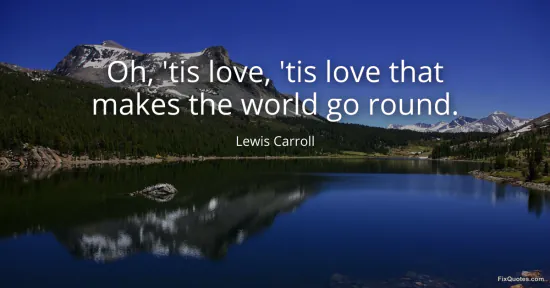 Carroll, Lewis. "Oh, 'tis love, 'tis love that makes the world go round." FixQuotes. January 15, 2026. https://fixquotes.com/quotes/oh-tis-love-tis-love-that-makes-the-world-go-round-22407/.