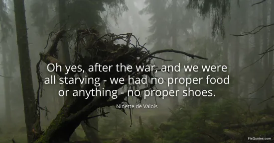 Valois, Ninette de. (2026, January 16). Oh yes, after the war, and we were all starving - we had no proper food or anything - no proper shoes. FixQuotes. https://fixquotes.com/quotes/oh-yes-after-the-war-and-we-were-all-starving--92729/