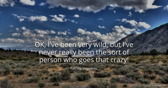 Velasquez, Patricia. (2026, January 16). OK, I've been very wild, but I've never really been the sort of person who goes that crazy! FixQuotes. https://fixquotes.com/quotes/ok-ive-been-very-wild-but-ive-never-really-been-123513/