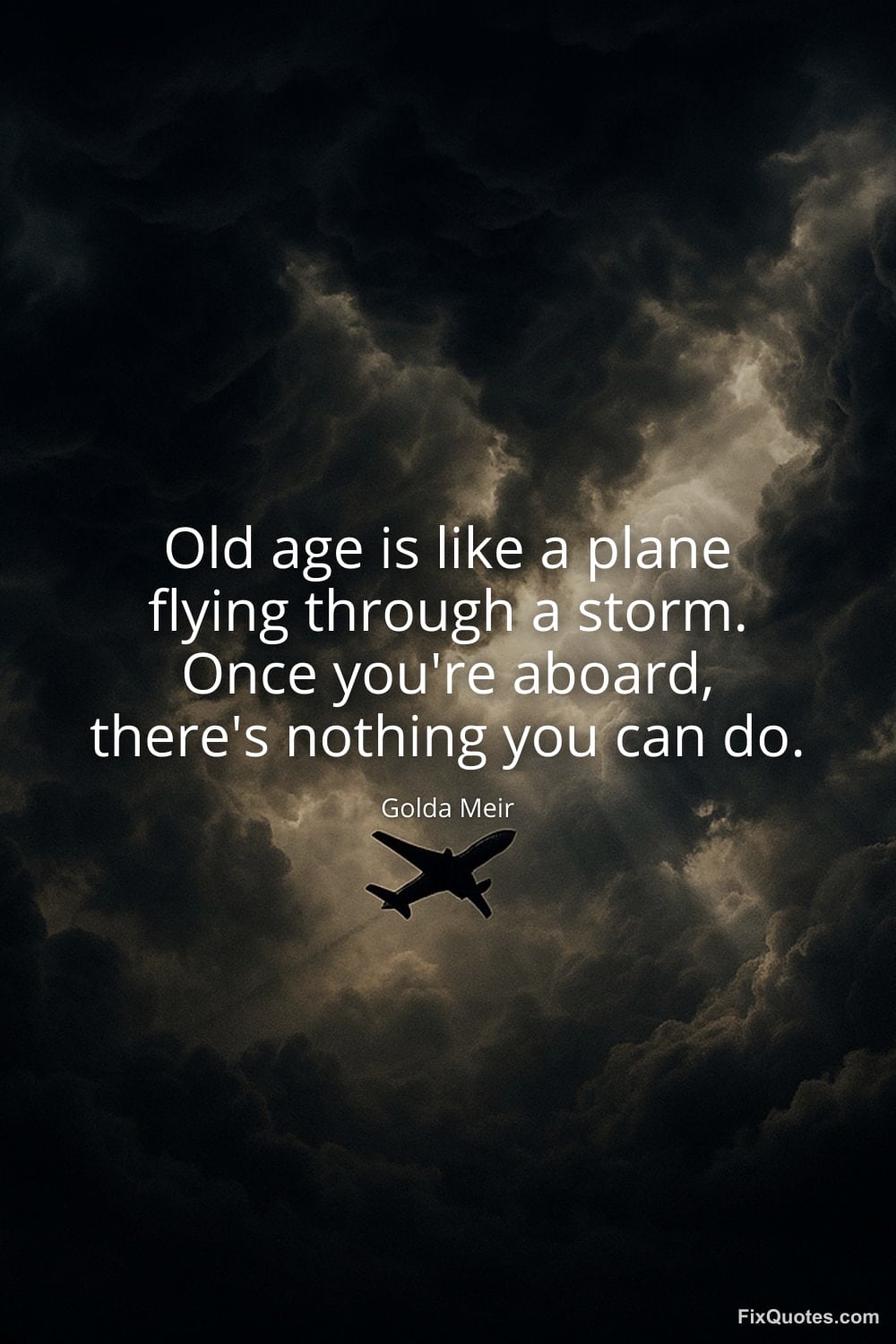 Meir, Golda. (2026, January 11). Old age is like a plane flying through a storm. Once you're aboard, there's nothing you can do. FixQuotes. https://fixquotes.com/quotes/old-age-is-like-a-plane-flying-through-a-storm-127111/