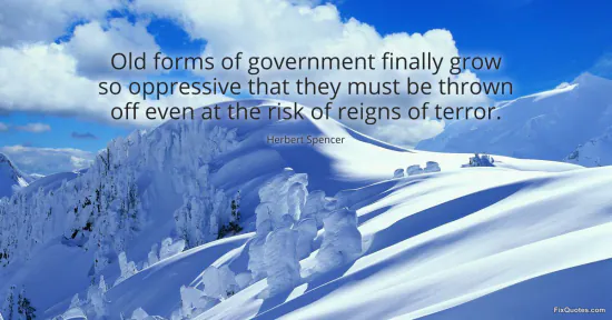 Spencer, Herbert. "Old forms of government finally grow so oppressive that they must be thrown off even at the risk of reigns of terror." FixQuotes. January 18, 2026. https://fixquotes.com/quotes/old-forms-of-government-finally-grow-so-11340/.
