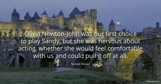 Kleiser, Randal. "Olivia Newton-John was our first choice to play Sandy, but she was nervous about acting, whether she would feel comfortable with us and could pull it off at all." FixQuotes. January 15, 2026. https://fixquotes.com/quotes/olivia-newton-john-was-our-first-choice-to-play-157063/.