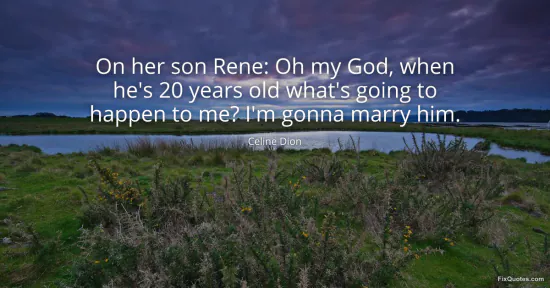 Dion, Celine. (2026, January 16). On her son Rene: Oh my God, when he's 20 years old what's going to happen to me? I'm gonna marry him. FixQuotes. https://fixquotes.com/quotes/on-her-son-rene-oh-my-god-when-hes-20-years-old-132304/