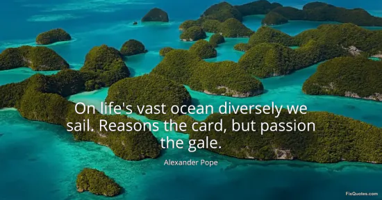 Pope, Alexander. "On life's vast ocean diversely we sail. Reasons the card, but passion the gale." FixQuotes. January 14, 2026. https://fixquotes.com/quotes/on-lifes-vast-ocean-diversely-we-sail-reasons-the-3340/.