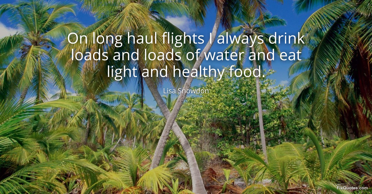 Snowdon, Lisa. (2026, January 16). On long haul flights I always drink loads and loads of water and eat light and healthy food. FixQuotes. https://fixquotes.com/quotes/on-long-haul-flights-i-always-drink-loads-and-129042/