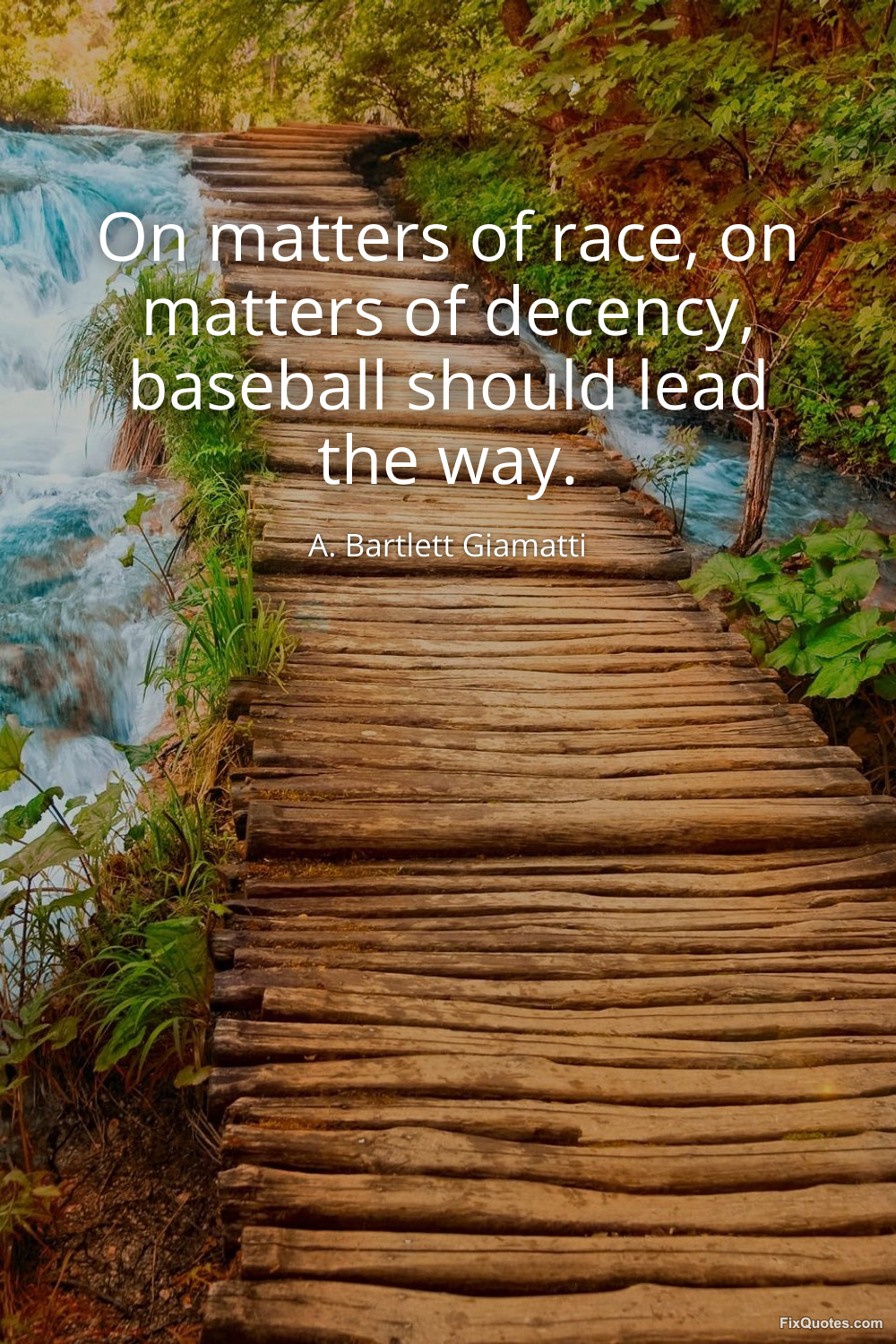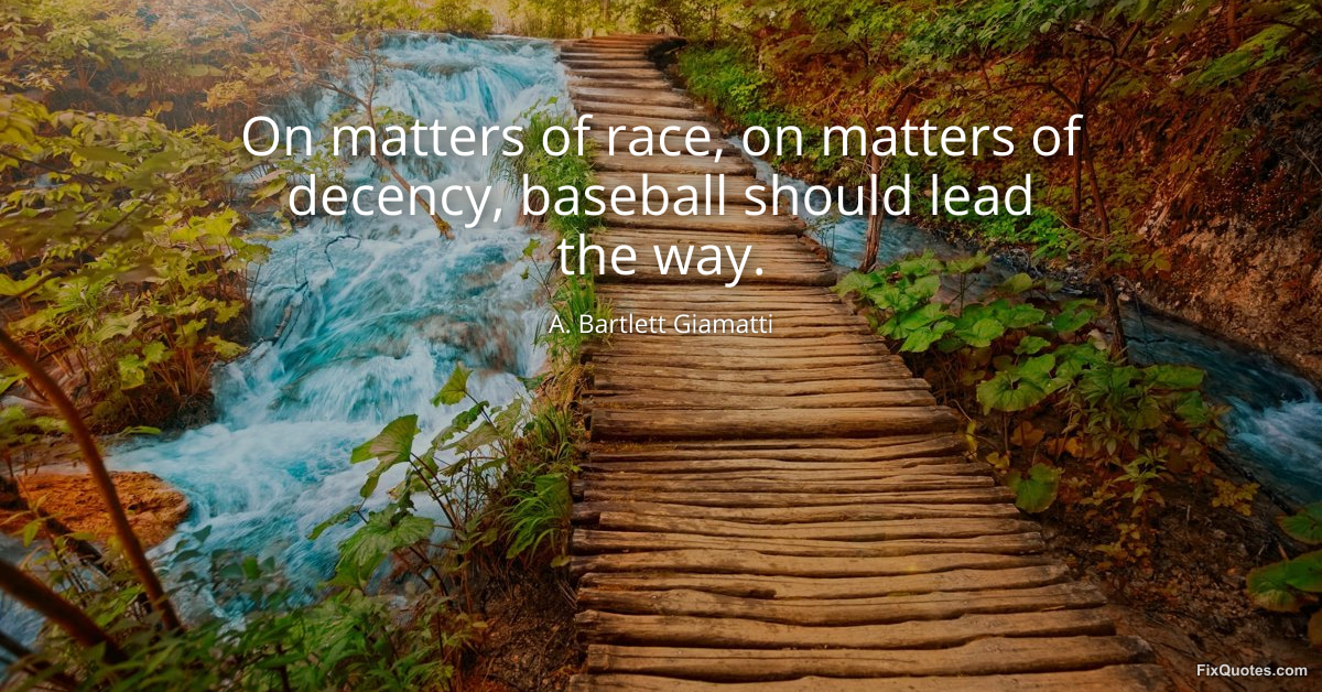 Giamatti, A. Bartlett. "On matters of race, on matters of decency, baseball should lead the way." FixQuotes. January 15, 2026. https://fixquotes.com/quotes/on-matters-of-race-on-matters-of-decency-baseball-149646/.