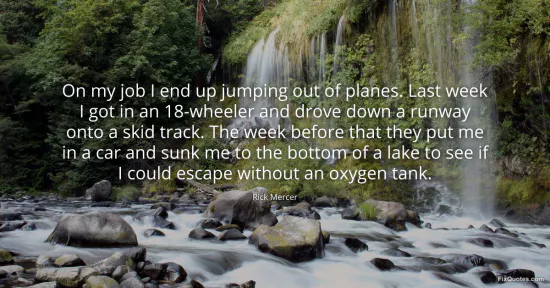 "On my job I end up jumping out of planes. Last week I got in an 18-wheeler and drove down a runway onto a skid track. The week before that they put me in a car and sunk me to the bottom of a lake to see if I could escape without an oxygen tank"