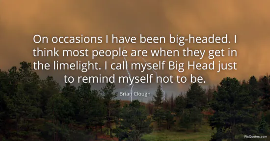 Clough, Brian. "On occasions I have been big-headed. I think most people are when they get in the limelight. I call myself Big Head just to remind myself not to be." FixQuotes. January 17, 2026. https://fixquotes.com/quotes/on-occasions-i-have-been-big-headed-i-think-most-44116/.