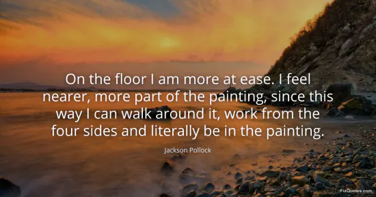 Pollock, Jackson. (2026, January 15). On the floor I am more at ease. I feel nearer, more part of the painting, since this way I can walk around it, work from the four sides and literally be in the painting. FixQuotes. https://fixquotes.com/quotes/on-the-floor-i-am-more-at-ease-i-feel-nearer-more-125588/