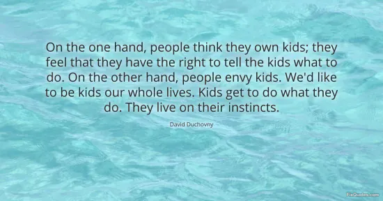Duchovny, David. "On the one hand, people think they own kids; they feel that they have the right to tell the kids what to do. On the other hand, people envy kids. We'd like to be kids our whole lives. Kids get to do what they do. They live on their instincts." FixQuotes. January 17, 2026. https://fixquotes.com/quotes/on-the-one-hand-people-think-they-own-kids-they-39108/.