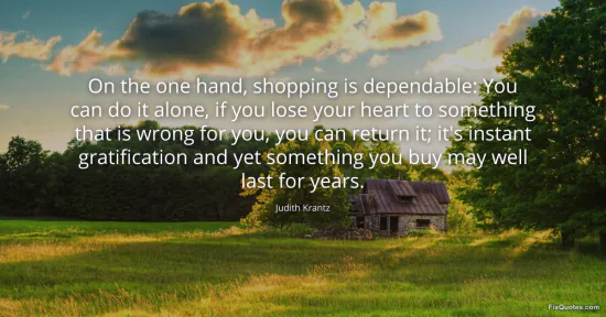 Krantz, Judith. (2026, January 15). On the one hand, shopping is dependable: You can do it alone, if you lose your heart to something that is wrong for you, you can return it; it's instant gratification and yet something you buy may well last for years. FixQuotes. https://fixquotes.com/quotes/on-the-one-hand-shopping-is-dependable-you-can-do-158780/