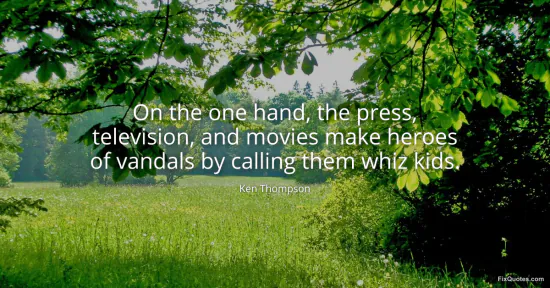 Thompson, Ken. (2026, January 16). On the one hand, the press, television, and movies make heroes of vandals by calling them whiz kids. FixQuotes. https://fixquotes.com/quotes/on-the-one-hand-the-press-television-and-movies-99689/