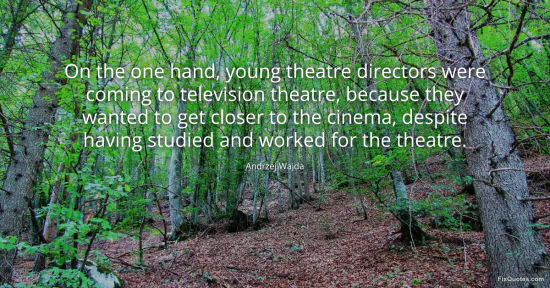 Wajda, Andrzej. "On the one hand, young theatre directors were coming to television theatre, because they wanted to get closer to the cinema, despite having studied and worked for the theatre." FixQuotes. January 17, 2026. https://fixquotes.com/quotes/on-the-one-hand-young-theatre-directors-were-42652/.