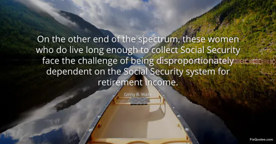 Waite, Ginny B. (2026, January 17). On the other end of the spectrum, these women who do live long enough to collect Social Security face the challenge of being disproportionately dependent on the Social Security system for retirement income. FixQuotes. https://fixquotes.com/quotes/on-the-other-end-of-the-spectrum-these-women-who-53492/