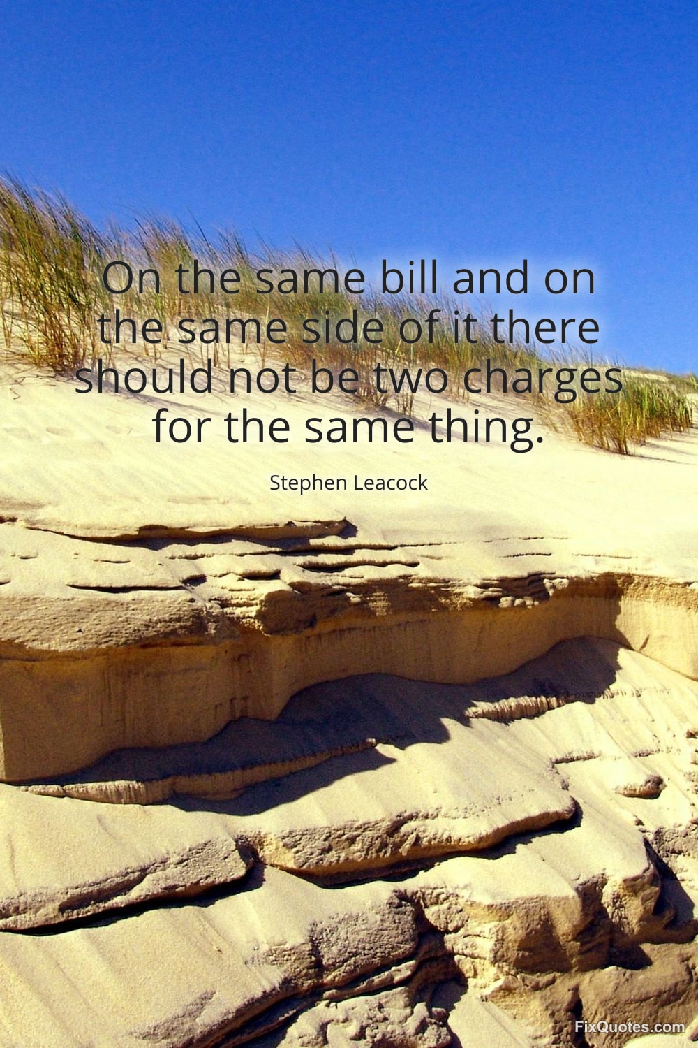 Leacock, Stephen. (2026, January 18). On the same bill and on the same side of it there should not be two charges for the same thing. FixQuotes. https://fixquotes.com/quotes/on-the-same-bill-and-on-the-same-side-of-it-there-10025/