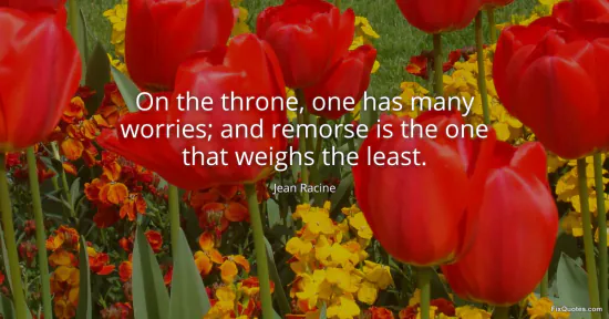 Racine, Jean. (2026, January 16). On the throne, one has many worries; and remorse is the one that weighs the least. FixQuotes. https://fixquotes.com/quotes/on-the-throne-one-has-many-worries-and-remorse-is-122301/