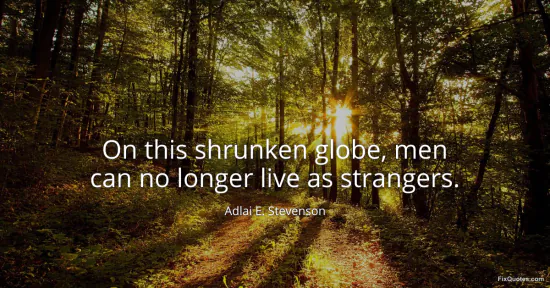 Stevenson, Adlai E. "On this shrunken globe, men can no longer live as strangers." FixQuotes. January 15, 2026. https://fixquotes.com/quotes/on-this-shrunken-globe-men-can-no-longer-live-as-138603/.