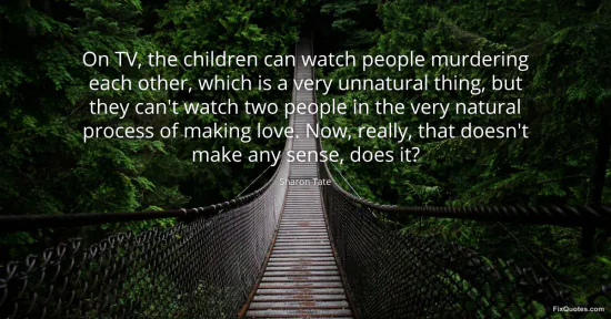 Tate, Sharon. (2026, January 16). On TV, the children can watch people murdering each other, which is a very unnatural thing, but they can't watch two people in the very natural process of making love. Now, really, that doesn't make any sense, does it? FixQuotes. https://fixquotes.com/quotes/on-tv-the-children-can-watch-people-murdering-118435/