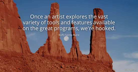 Sainte-Marie, Buffy. (2026, January 16). Once an artist explores the vast variety of tools and features available on the great programs, we're hooked. FixQuotes. https://fixquotes.com/quotes/once-an-artist-explores-the-vast-variety-of-tools-139541/