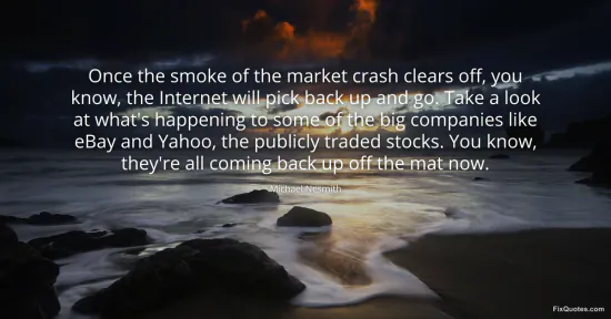 Nesmith, Michael. "Once the smoke of the market crash clears off, you know, the Internet will pick back up and go. Take a look at what's happening to some of the big companies like eBay and Yahoo, the publicly traded stocks. You know, they're all coming back up off the mat now." FixQuotes. January 16, 2026. https://fixquotes.com/quotes/once-the-smoke-of-the-market-crash-clears-off-you-120370/.