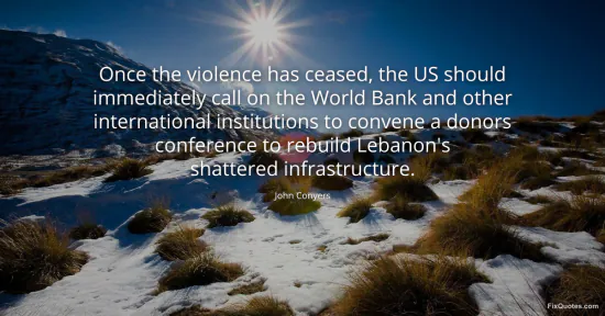 Conyers, John. (2026, January 16). Once the violence has ceased, the US should immediately call on the World Bank and other international institutions to convene a donors conference to rebuild Lebanon's shattered infrastructure. FixQuotes. https://fixquotes.com/quotes/once-the-violence-has-ceased-the-us-should-114142/