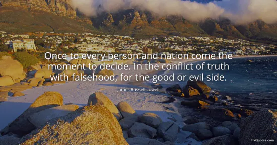 "Once to every person and nation come the moment to decide. In the conflict of truth with falsehood, for the good or evil side"