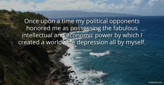 Hoover, Herbert. "Once upon a time my political opponents honored me as possessing the fabulous intellectual and economic power by which I created a worldwide depression all by myself." FixQuotes. January 18, 2026. https://fixquotes.com/quotes/once-upon-a-time-my-political-opponents-honored-19989/.