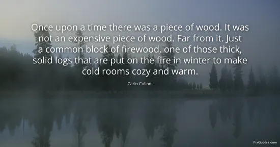 Collodi, Carlo. (2026, January 18). Once upon a time there was a piece of wood. It was not an expensive piece of wood. Far from it. Just a common block of firewood, one of those thick, solid logs that are put on the fire in winter to make cold rooms cozy and warm. FixQuotes. https://fixquotes.com/quotes/once-upon-a-time-there-was-a-piece-of-wood-it-was-9303/