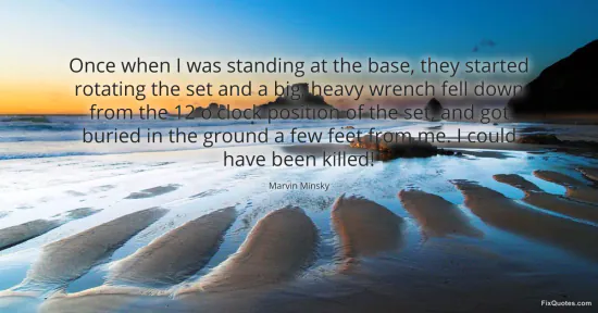 Minsky, Marvin. "Once when I was standing at the base, they started rotating the set and a big, heavy wrench fell down from the 12 o'clock position of the set, and got buried in the ground a few feet from me. I could have been killed!" FixQuotes. January 16, 2026. https://fixquotes.com/quotes/once-when-i-was-standing-at-the-base-they-started-114528/.