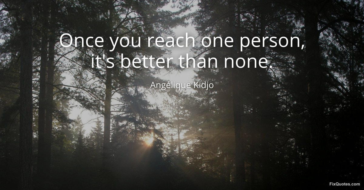 Kidjo, Angélique. (2026, February 16). Once you reach one person, it's better than none. FixQuotes. https://fixquotes.com/quotes/once-you-reach-one-person-its-better-than-none-185373/