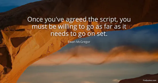 McGregor, Ewan. (2026, January 16). Once you've agreed the script, you must be willing to go as far as it needs to go on set. FixQuotes. https://fixquotes.com/quotes/once-youve-agreed-the-script-you-must-be-willing-95342/