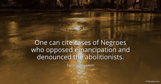 Woodson, Carter G. (2026, January 15). One can cite cases of Negroes who opposed emancipation and denounced the abolitionists. FixQuotes. https://fixquotes.com/quotes/one-can-cite-cases-of-negroes-who-opposed-154683/