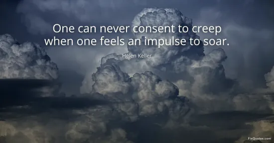 Keller, Helen. (2026, January 17). One can never consent to creep when one feels an impulse to soar. FixQuotes. https://fixquotes.com/quotes/one-can-never-consent-to-creep-when-one-feels-an-35759/