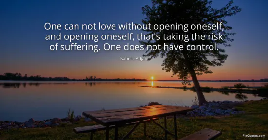 Adjani, Isabelle. (2026, January 17). One can not love without opening oneself, and opening oneself, that's taking the risk of suffering. One does not have control. FixQuotes. https://fixquotes.com/quotes/one-can-not-love-without-opening-oneself-and-79872/