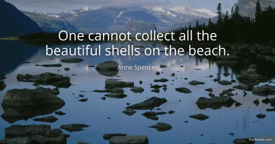 Spencer, Anne. (2026, January 17). One cannot collect all the beautiful shells on the beach. FixQuotes. https://fixquotes.com/quotes/one-cannot-collect-all-the-beautiful-shells-on-40282/
