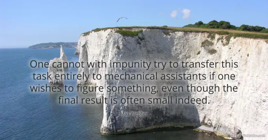 Webber, Max. "One cannot with impunity try to transfer this task entirely to mechanical assistants if one wishes to figure something, even though the final result is often small indeed." FixQuotes. January 15, 2026. https://fixquotes.com/quotes/one-cannot-with-impunity-try-to-transfer-this-161539/.