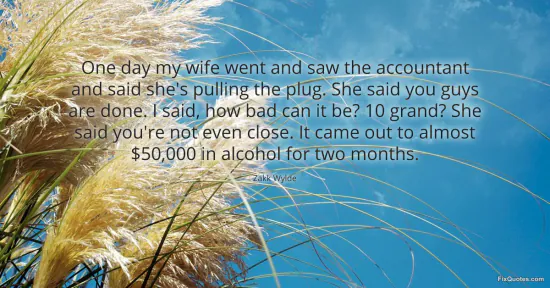 Wylde, Zakk. (2026, January 15). One day my wife went and saw the accountant and said she's pulling the plug. She said you guys are done. I said, how bad can it be? 10 grand? She said you're not even close. It came out to almost $50,000 in alcohol for two months. FixQuotes. https://fixquotes.com/quotes/one-day-my-wife-went-and-saw-the-accountant-and-156991/
