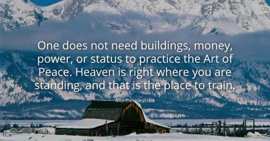 Ueshiba, Morihei. (2026, January 16). One does not need buildings, money, power, or status to practice the Art of Peace. Heaven is right where you are standing, and that is the place to train. FixQuotes. https://fixquotes.com/quotes/one-does-not-need-buildings-money-power-or-status-85334/