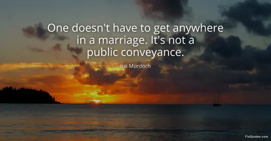 Murdoch, Iris. (2026, January 16). One doesn't have to get anywhere in a marriage. It's not a public conveyance. FixQuotes. https://fixquotes.com/quotes/one-doesnt-have-to-get-anywhere-in-a-marriage-its-101735/