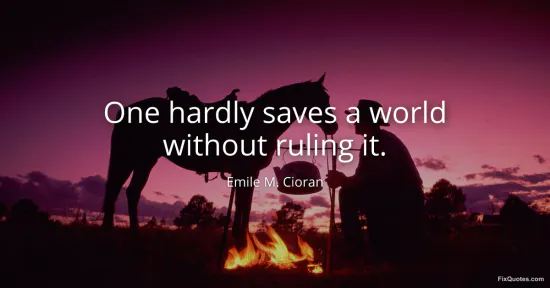 Cioran doesn’t offer comfort; he offers a trap. “One hardly saves a world without ruling it” reads like a shrug dressed up as a warning: every grand promise of rescue smuggles in a bid for control. The line works because it’s built on a suspicion that “saving” is rarely altruistic. To “save” implies a verdict that the world is broken and that you possess the authority to define what “fixed” looks like. That authority is already a form of rule.