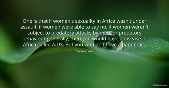 Lewis, Stephen. (2026, January 15). One is that if women's sexuality in Africa wasn't under assault, if women were able to say no, if women weren't subject to predatory attacks by men, or predatory behaviour generally, then you would have a disease in Africa called AIDS. But you wouldn't have a pandemic. FixQuotes. https://fixquotes.com/quotes/one-is-that-if-womens-sexuality-in-africa-wasnt-165042/